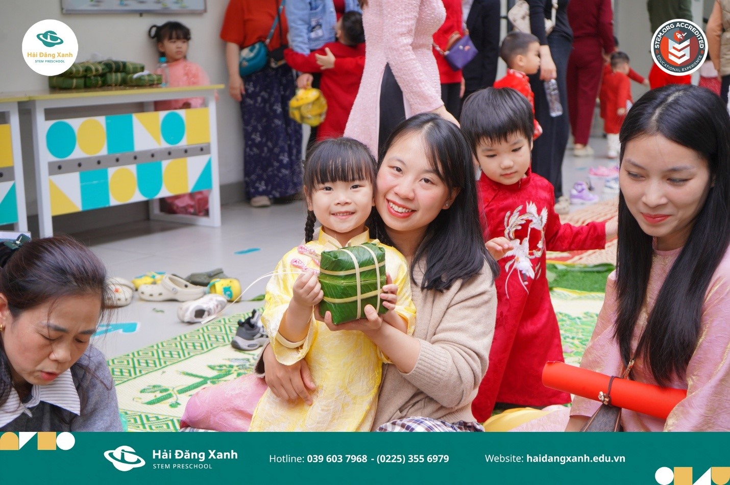On the afternoon of February 6, 2026, Hai Dang Xanh STEM Preschool successfully hosted its annual Chung Cake-Making Festival under the theme “Spacious Tet – Golden Horse of Prosperity,” welcoming the participation of nearly 200 student families.
